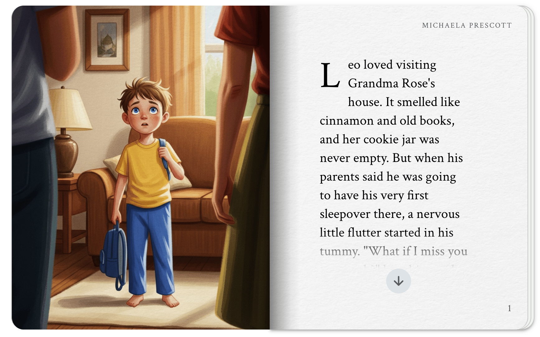 A screenshot from Gemini after I prompted it for “a storybook about Leo, who’s nervous to sleepover at Grandma’s house”
